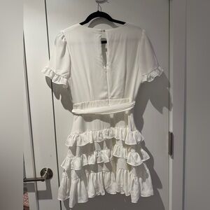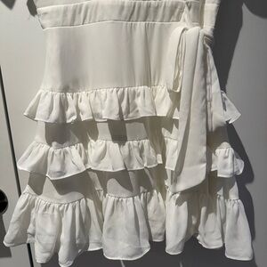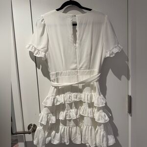 Elevate your style with the Lulu's White Ruffle Wrap Dress. This elegant piece features a flattering wrap design and charming ruffle details, perfect for any occasion.