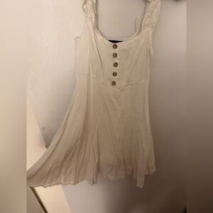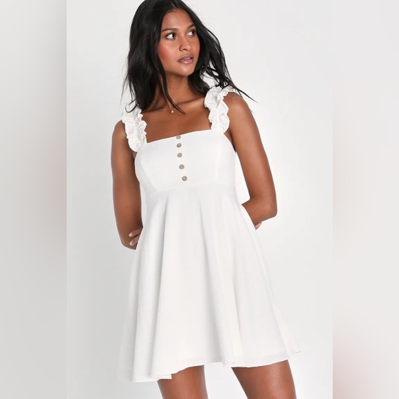 Chic white dress with ruffle straps. Features button detailing on the front. Size small. Only worn once for graduation. Has pockets!