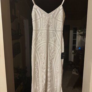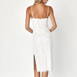 Lulu's Alluring Interest White Sequin Embroidered Sleeveless Midi Dress