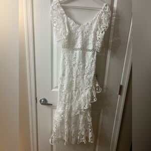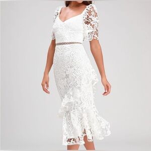 Lulu's White Sheath Dress Puff Sleeve Scoop Neck