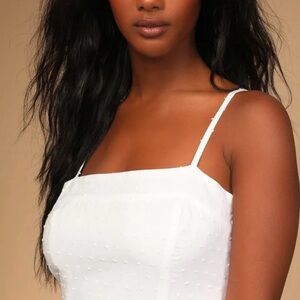 This elegant white maxi dress by Lulu's is designed with delicate spaghetti straps and a square neckline, making it perfect for a bride or resort wear. The sleeveless style and flowing silhouette offer a breezy, comfortable fit ideal for warm weather occasions. Crafted from lightweight fabric, this dress exudes a simple yet sophisticated charm.