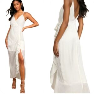 Lulu's White Textured Faux Wrap Bridal Dance Dress Size S NWOT