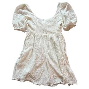 Lulus White Textured Puff Sleeve Mini Dress Women’s Size M