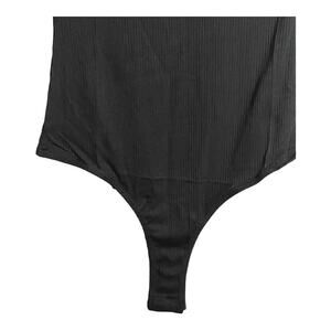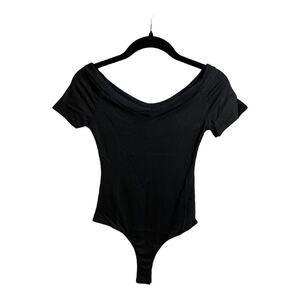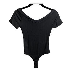 Lulu’s Wide Neck V-Neck Short Sleeved Ribbed Bodysuit in Black Size Small NWT