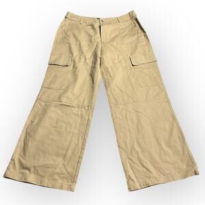 Lulus Wide-Leg Cargo Pants Women's X-Large Tan High-Rise Zip Fly Belt Loops NWT