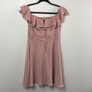 Lulus Win Your Heart Blush Ruffle Off-the-Shoulder Skater Dress size M