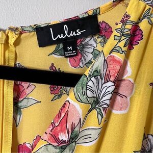 Lulu’s Windows Down Yellow Floral Print Button-Front Midi Dress Size Medium.