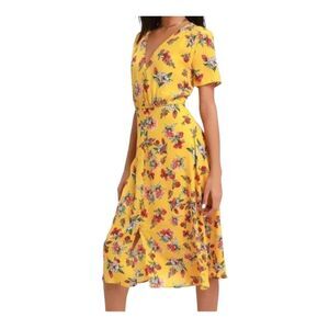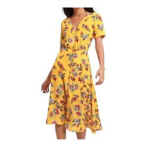 Lulu’s Windows Down Yellow Floral Print Button-Front Midi Dress Size Medium