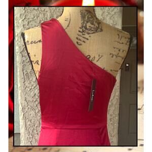 Lulus Wine Red Satin One-Shoulder Dreaming of Elegance Maxi Dress Size S