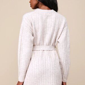 Lulus Wishing On Winter Cream Cable Knit Mini Sweater Dress White - Size L