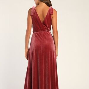Lulu's Women Dusty Rose Velvet Tie-Strap Wrap Maxi Dress