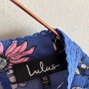 Lulus Women Long Lace Sleeve Floral Print Lace Detailed At the Top Mini Dress Blue Size XS