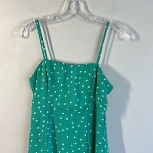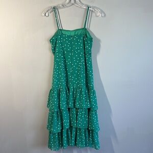 Lulus Women Nellie Green Polka Dot Ruffled Midi Dress Sz S Square Neckline Tiers