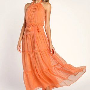 Lulu's Women Orange Tiered Halter Maxi Dress