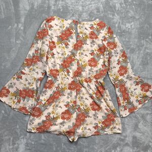Lulus Women XL Always Thriving Blush Pink Floral Print Bell Sleeve Floral Romper