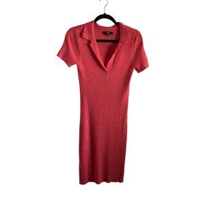 Lulus Women XL Preppy Stretch Short Sleeve Tee Time Coral Ribbed Polo Mini Dress.