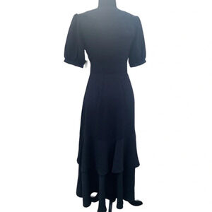 Lulu's Women’s Black Button-Up Short Sleeve Midi Cascading Ruffles Dress Size XS