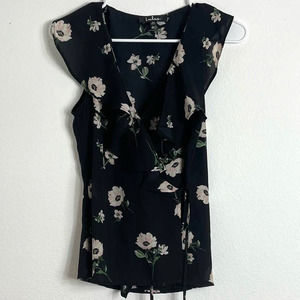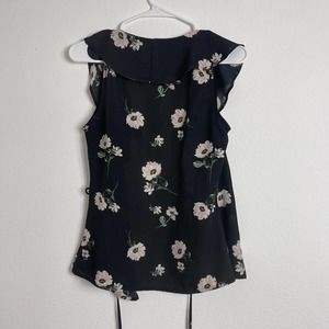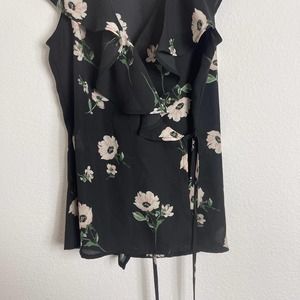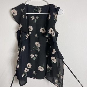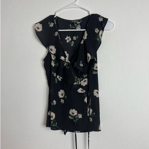 Lulus Women's Black Floral Print Ruffle Wrap Blouse Size XS