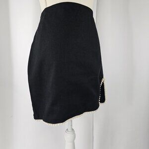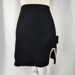 Lulus Women's Black Pearl Trimmed Front Slit Mini Skirt Size X-Large NWT