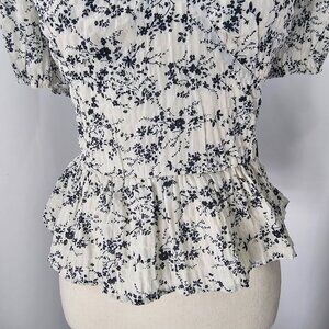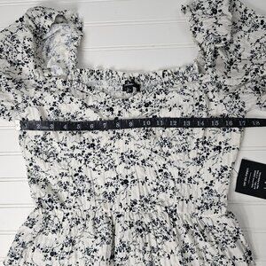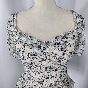 Lulus Women's Black & White Floral Print Puff Sleeve Smocked Blouse Size L NWT