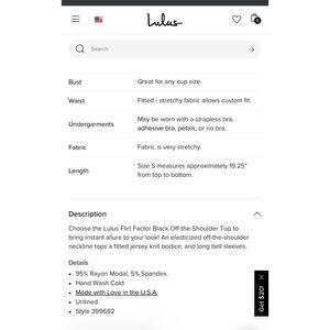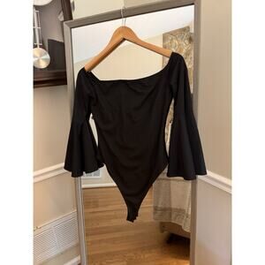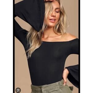 Lulus Womens Bodysuit Size Small Flirt Factor Black Off-the-Shoulder Top