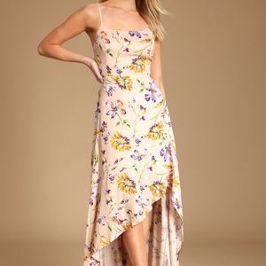 Lulus Women's Bright Blossoms Blush Pink Floral Print High-Low Maxi Dress Medium