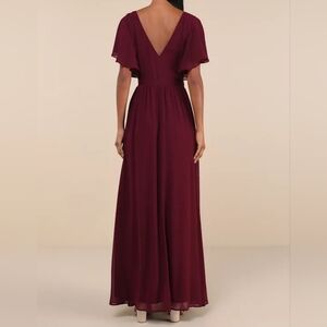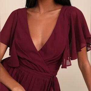 Lulus Women's Convincing Grace Burgundy Flutter Sleeve Wrap Maxi Dress, Size MED