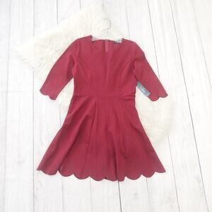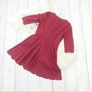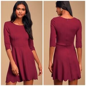 High in the sky and beautifully billowy, it's no wonder the Lulus Cumulonimbus Clouds Burgundy Skater Dress is named after a powerful storm cloud! Princess seams run down the flattering, stretch-knit bodice and into a fitted waist, before splaying out in a skater skirt. Flirty scalloped detailing adorns the hems at both the three-quarter sleeves and the twirl-worthy skirt! Hidden zipper.