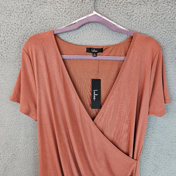 Lulu's Womens Cutest Moments Rusty Rose Short Sleeve Surplice Midi Dress Sz XL