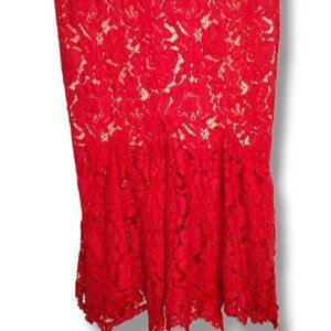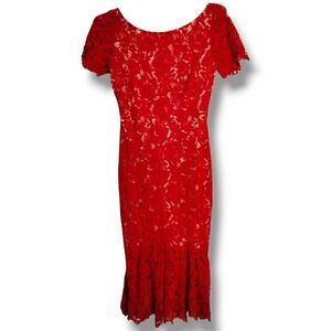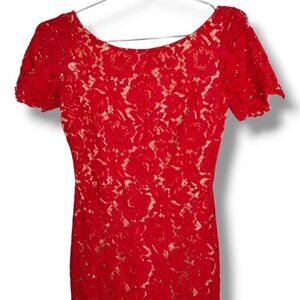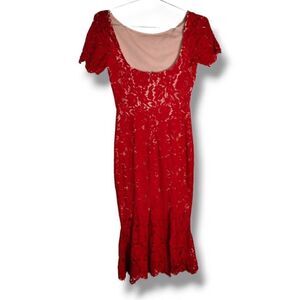 Lulus Womens Dress Size XS Red Lace Short Sleeves Low Back Scoop Neck Fit Flare