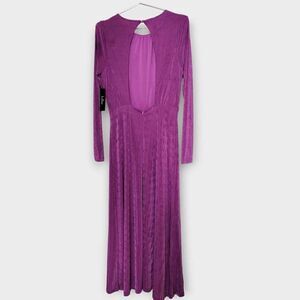 Lulus Womens Dress Sz Medium Maxi Purple Jersey Backless Long Sleeves Retro 20s