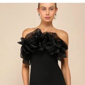 Lulus Women's Evening Excellence Black Ruffled Strapless Mermaid Maxi Dress Sz L