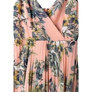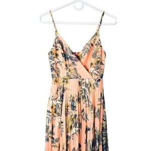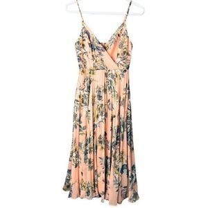 Lulus Womens Floral Print Faux Wrap Pleated Fit & Flare Dress Peach Size XS