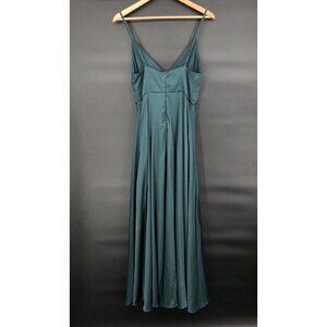 Lulus Women's Front Slit Satin Maxi Dress S Teal Green Formal Dance Bridesmaid