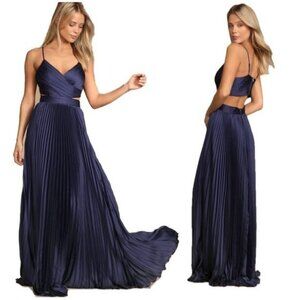 Lulu's Women's Got the Glam Pleated Cutout Maxi Dress Plum Purple Size L NWOT
