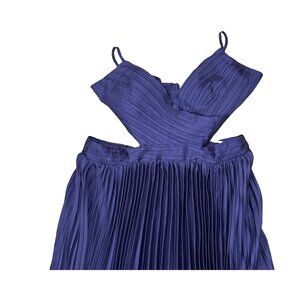 Elegant and sophisticated, this plum purple maxi dress features pleated detailing and a chic cutout design, perfect for glamorous occasions. Size L, new without tags.