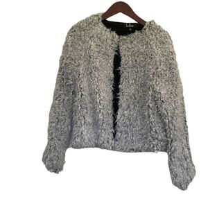 Lulus Womens Grant Grey Faux Fur Colarless Jacket medium
