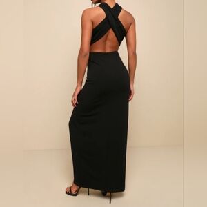 Lulus Women's Head to Cocktail Hour Black Halter Neck Maxi Dress, Size Small