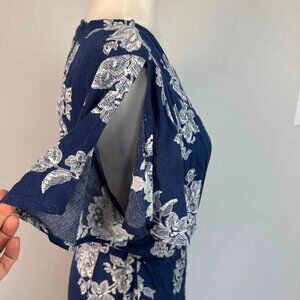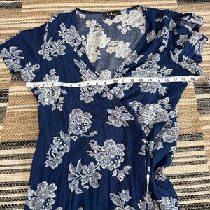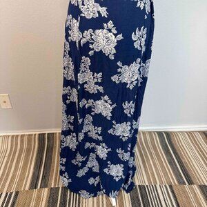 Lulus Women's Heart of Marigold Wrap Maxi Dress 100% Rayon Floral Navy Blue Sz L