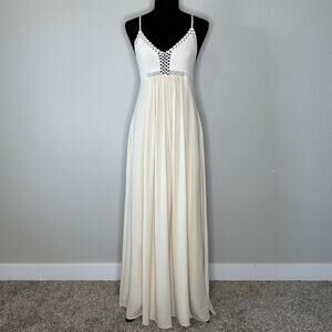 Lulu’s Women’s Hippie Hippie Chic Maxi Dress Crochet Bodice Cream Size Medium