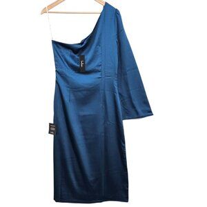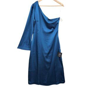 Lulus Womens L Blue One Sleeve Satin Midi Evening Dress NWT