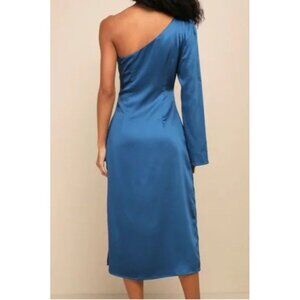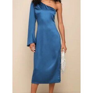 Lulus Blue One Sleeve Satin Midi Evening Dress NWT