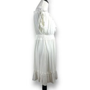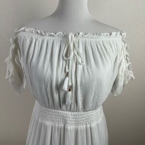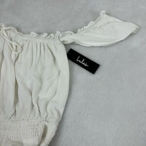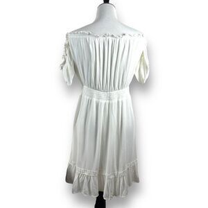 Lulu's Women's L Palmeras Off Shoulder Flutter Mini Dress White Smocked Ruffle