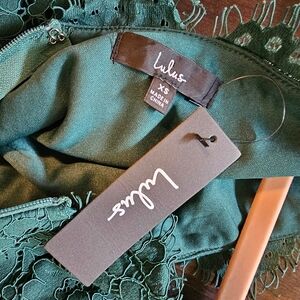 Lulus Women's Love Swept Emerald Green Lace Midi Skater Dress With Pockets, XS