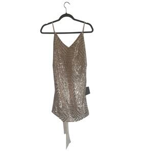 Lulus Women's M Champagne Sequin Asymmetrical Cami Elegant Party Dress