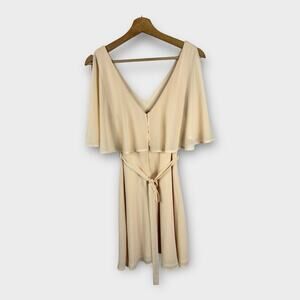 Lulus Womens Medium Cape Overlay Flutter Style A Line Mini Dress Pink Cream