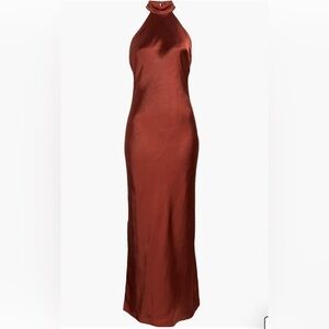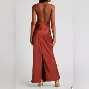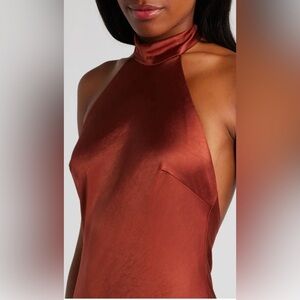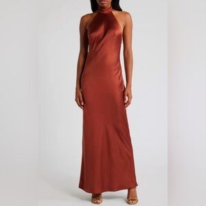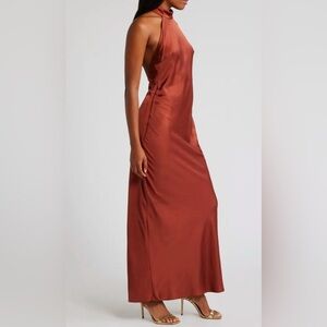Lulus Women’s Medium Copper Love in Your Life Satin Cocktail Halter Maxi Dress