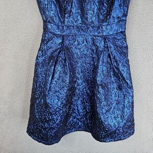 Lulu's Womens Mini Dress Sz XS Metallic Blue Jaquard Sleeveless Adj Straps FLAW