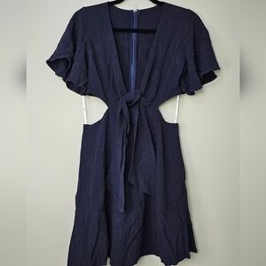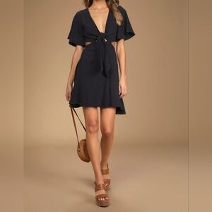 NWOT Lulus Perfect Day for Love Navy Blue Cutout Tie-Front Mini Dress, Size Small (size tag missing, please see measurements below)