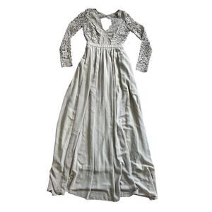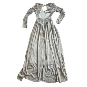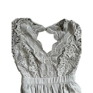 Lulus Womens S Dress Gray Fit Flare Long Sleeve Backless Floral Crochet Lace Zip